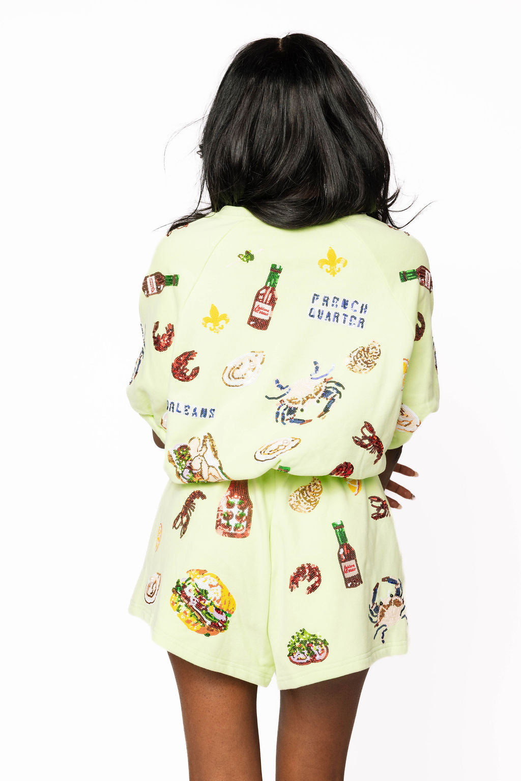 Serve up some serious style with this Light Green Louisiana Food Top/Short Set! Inspired by iconic Creole cuisine, this playful two-piece celebrates all the flavors you love. The soft light green hue pairs perfectly with fun food-themed details that'll have everyone asking where you got your outfit. Comfortable, quirky, and totally Instagram-worthy—ideal for casual outings, themed events, or whenever you want to show off your love for Louisiana's legendary food scene.