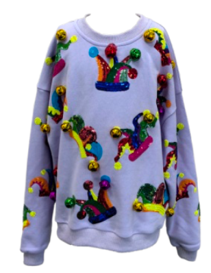 Get ready to celebrate in style with this whimsical Lavender Mardi Gras Jester Hat Sweatshirt! Featuring a vibrant jester hat design in gorgeous lavender tones, this playful piece brings festive flair to any wardrobe. Perfect for Mardi Gras parties, costume events, or anyone who loves bold, fun fashion. The cozy sweatshirt construction keeps you comfortable while the eye-catching jester motif ensures you'll be the life of the party. Whether you're dancing down the street or just spreading good vibes, this sweatshirt delivers personality and pizzazz in one delightful package.