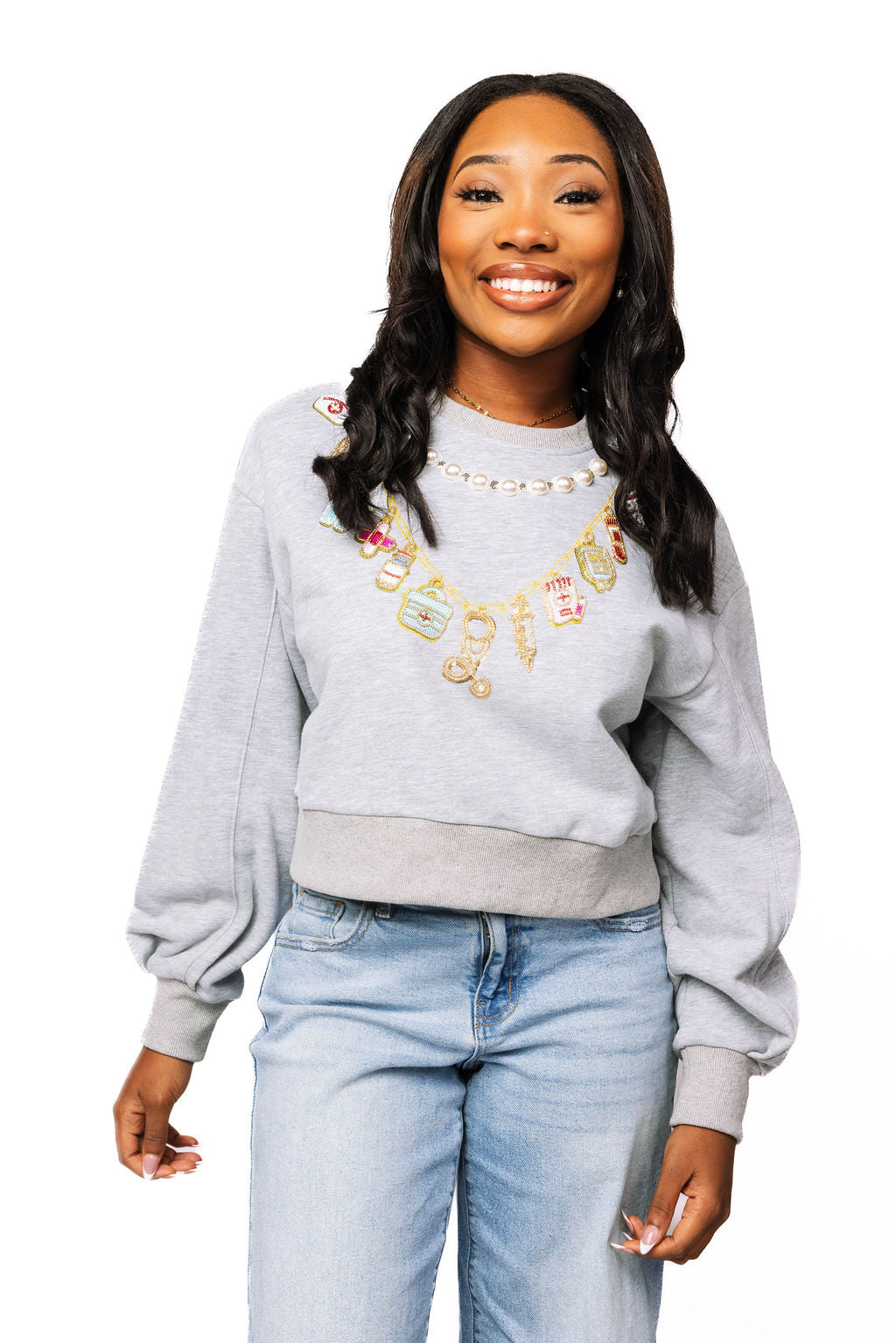 Grey Medical Supplies Charm Necklace Sweatshirt