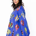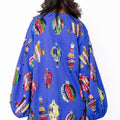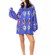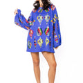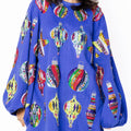 Blue Multi Color Ornaments Balloon Sleeve Dress