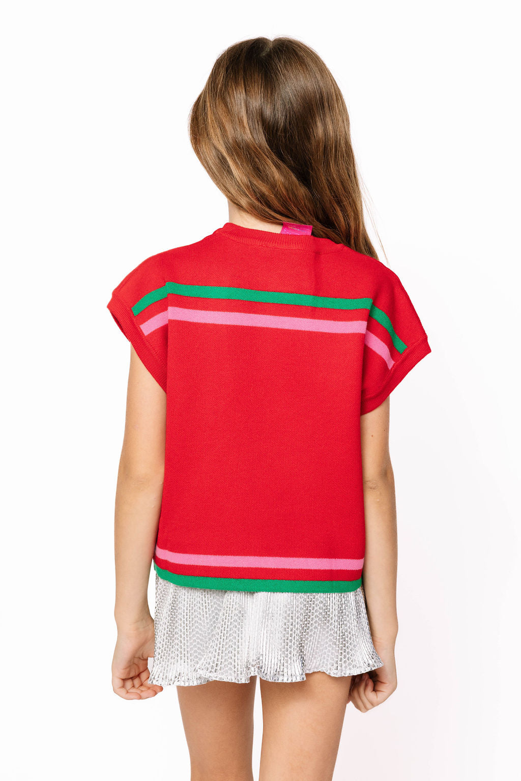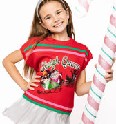 Kids Red, Green & Pink 'Sleigh Queen' Stripe Top