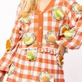 Celebrate Thanksgiving in style with this playful Orange Checker Knit Skirt featuring a fun food-on-plate pattern. Its cozy knit fabric keeps you comfortable while the bright orange checker design adds a cheerful, festive touch. Perfect for holiday gatherings, this skirt combines whimsy and warmth to make your seasonal outfit delightfully unique.