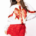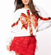SAMPLE- White and Red Metallic Bow Sweatshirt