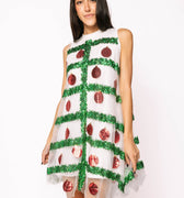 SAMPLE- White Tulle Green Tinsel & Red Dress