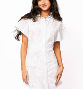SAMPLE- White Metallic Bow All Over Dress