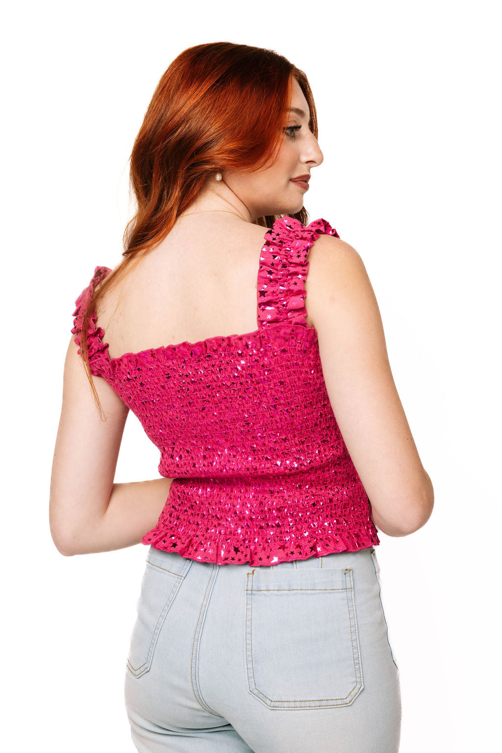 Sample Pink Metallic Stars Smocked Tank