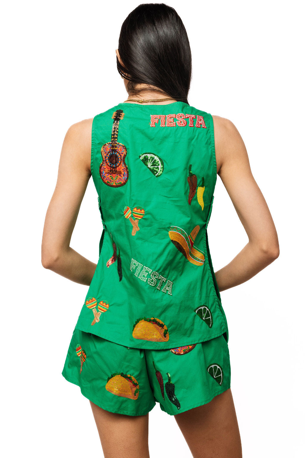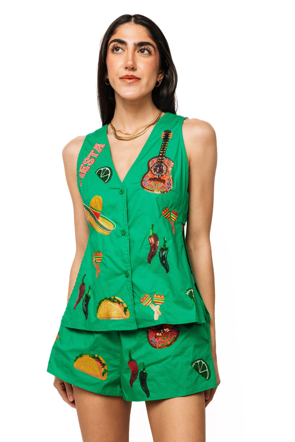 Sample Green Cinco Icon Cotton Button Down Tank & Short Set