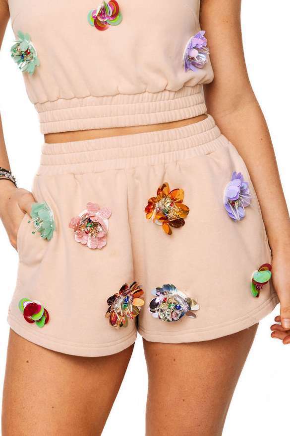 Sample Tan 3D Flower Short