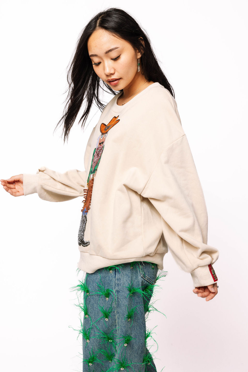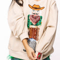 Get ready to sleigh the season with our Beige Cowboy Nutcracker Sweatshirt! This oversized cozy favorite showcases a festive nutcracker on both front and back, bringing holiday cheer with a Western twist. Perfect for kicking up some fun while staying warm and comfy all winter long.