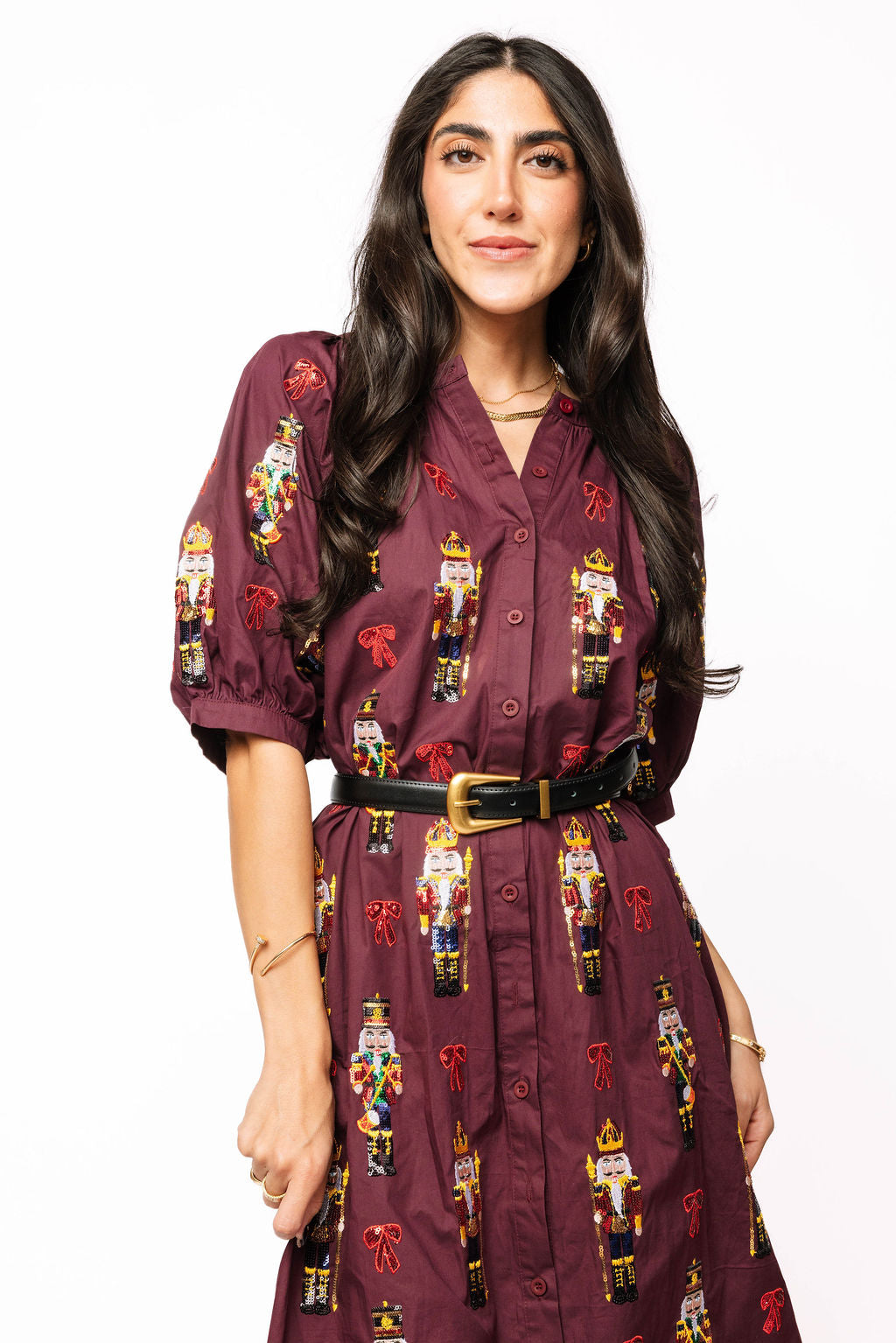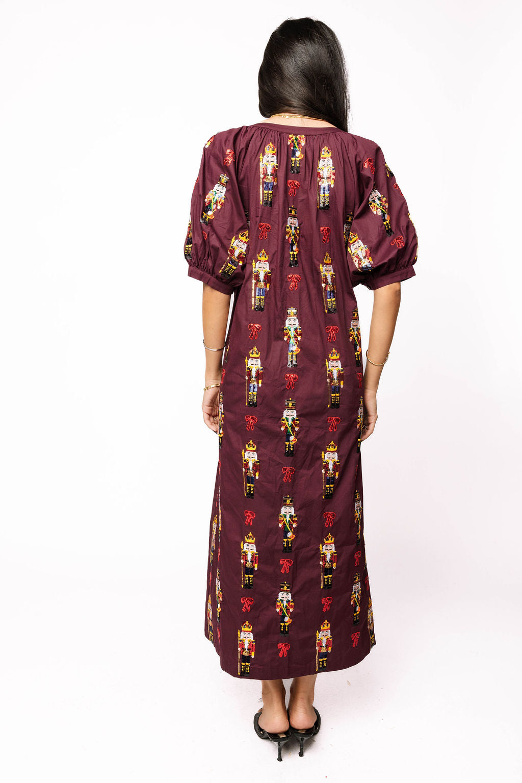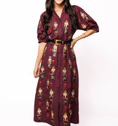 SAMPLE- Maroon Nutcracker & Candy Midi Dress