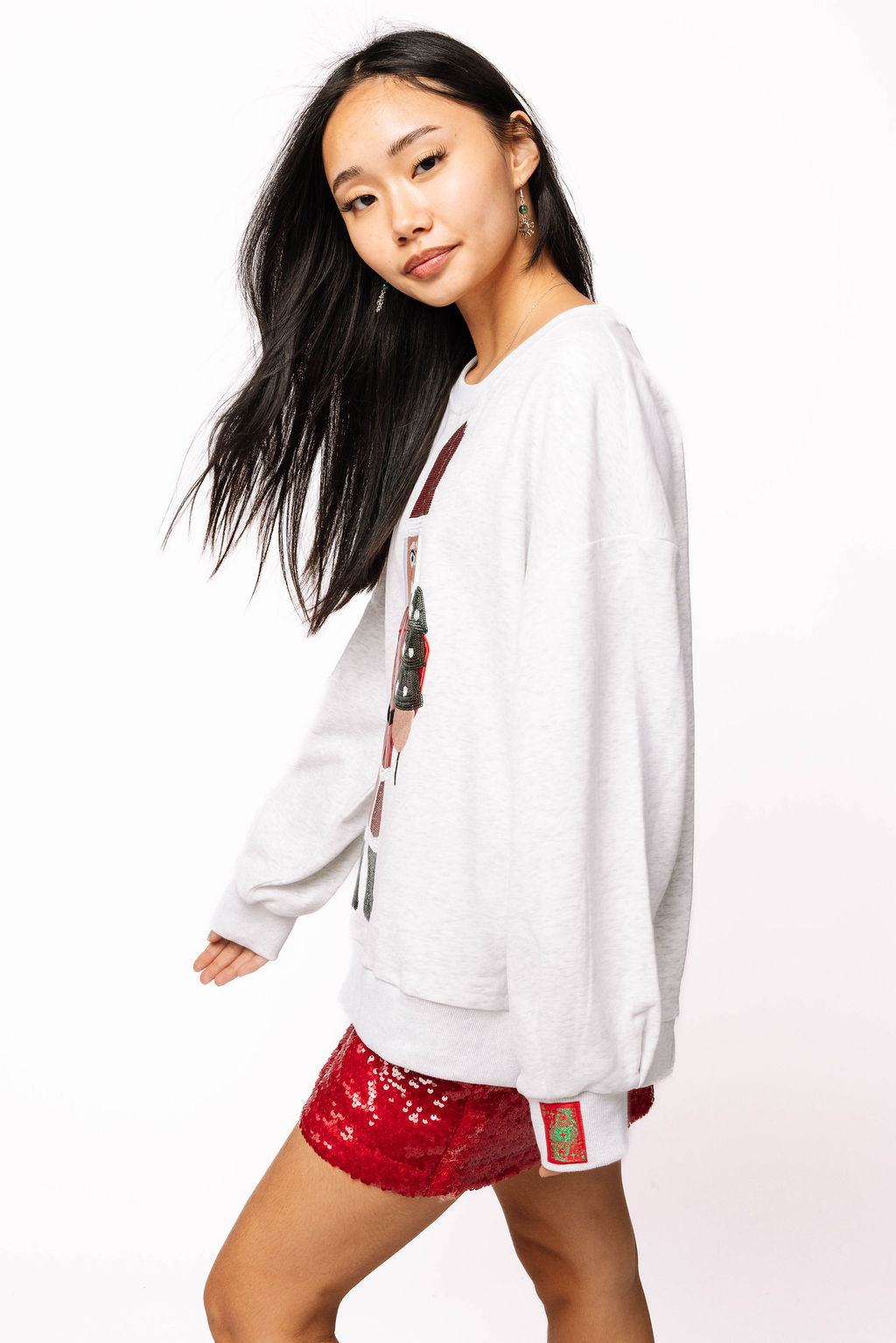Celebrate the holidays in cozy style with this Grey Santa Nutcracker Sweatshirt. Featuring a fun twist on a classic festive figure, it brings playful charm to your winter wardrobe while keeping you warm and comfortable. Perfect for holiday parties, casual gatherings, or just spreading cheer wherever you go!
