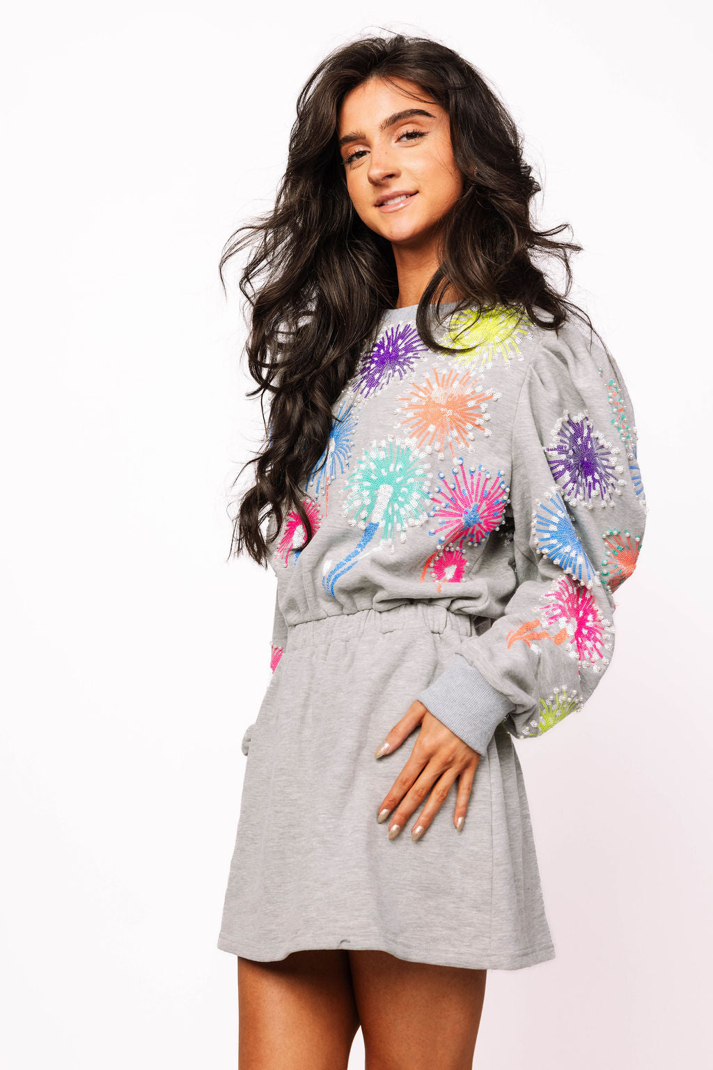 Light up any celebration in this stunning Grey Multi Firework Dress! Bursting with vibrant firework-inspired patterns in shades of gray and multi-color accents, this dress brings festive energy to your wardrobe. Perfect for parties, events, or whenever you want to make a dazzling statement. The playful design captures the magic of celebration while the comfortable fit keeps you feeling fabulous all night long. Whether you're dancing under the stars or turning heads at a gathering, this dress ensures you'll sparkle with confidence and style.