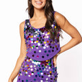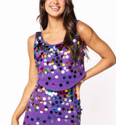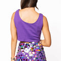 Twirl into the spotlight with this dazzling purple and rainbow paillette skort! Covered in shimmering sequins that catch every light, this playful piece brings instant glamour and fun to any outfit. Perfect for dance performances, parties, or anyone who loves to sparkle. The skort design offers comfort and coverage while keeping you stage-ready. Make every moment shine bright!