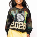Ring in 2026 in style with this eye-catching black sweatshirt featuring a dazzling city skyline bursting with colorful fireworks and bold golden "2026" lettering. Perfect for New Year's Eve celebrations, countdown parties, or anyone ready to sparkle into the next year. Cozy, comfortable, and guaranteed to turn heads as the clock strikes midnight.