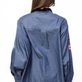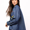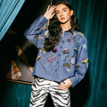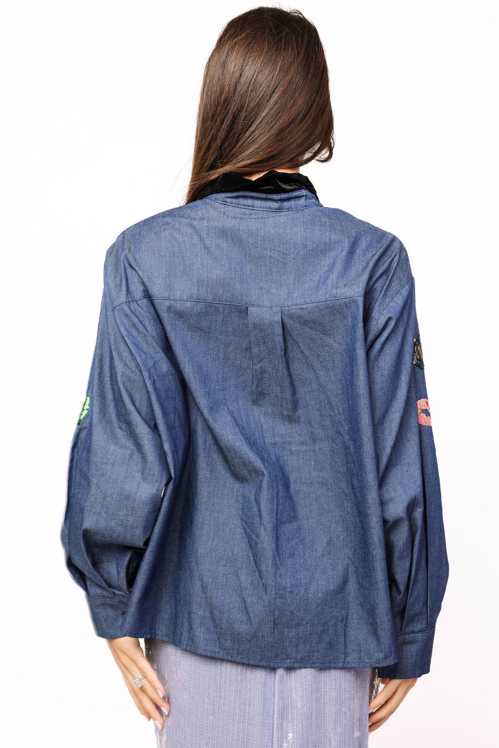 Denim NYE Icon Button Up Top With Black Velvet Collar