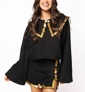 Sample Black & Gold Paillette Collar Top/Skort Set