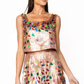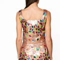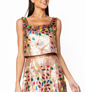 Shine bright in this show-stopping tank and skort combo! The copper and multi-colored mirror accents catch the light from every angle, creating a dazzling effect that's perfect for performances, competitions, or anyone who loves to sparkle. The coordinated set keeps your look polished and put-together while the playful mirror details add serious personality. Whether you're hitting the stage or turning heads at an event, this dynamic duo delivers maximum glamour with effortless style.