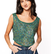 Sparkle in style with this vibrant green tank that's absolutely dripping in multi-colored rhinestones! Perfect for anyone who believes more shimmer is always better, this eye-catching piece brings the glam to casual wear. Whether you're hitting the town or just want to shine at everyday moments, this rhinestone-studded tank delivers major sparkle energy. A playful essential for those who love to stand out and celebrate their inner diva!