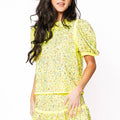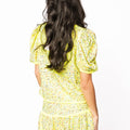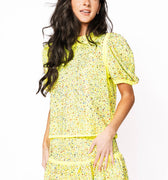 Sample Neon Yellow Rhinestone Poof Sleeve Top/Skirt Set