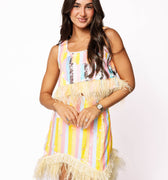 Sample Pastel Sequin Striped Feather Bottom Tank/Skirt Set