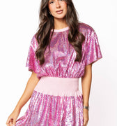 Sample Pink Full Sequin Smocked Tee Dress