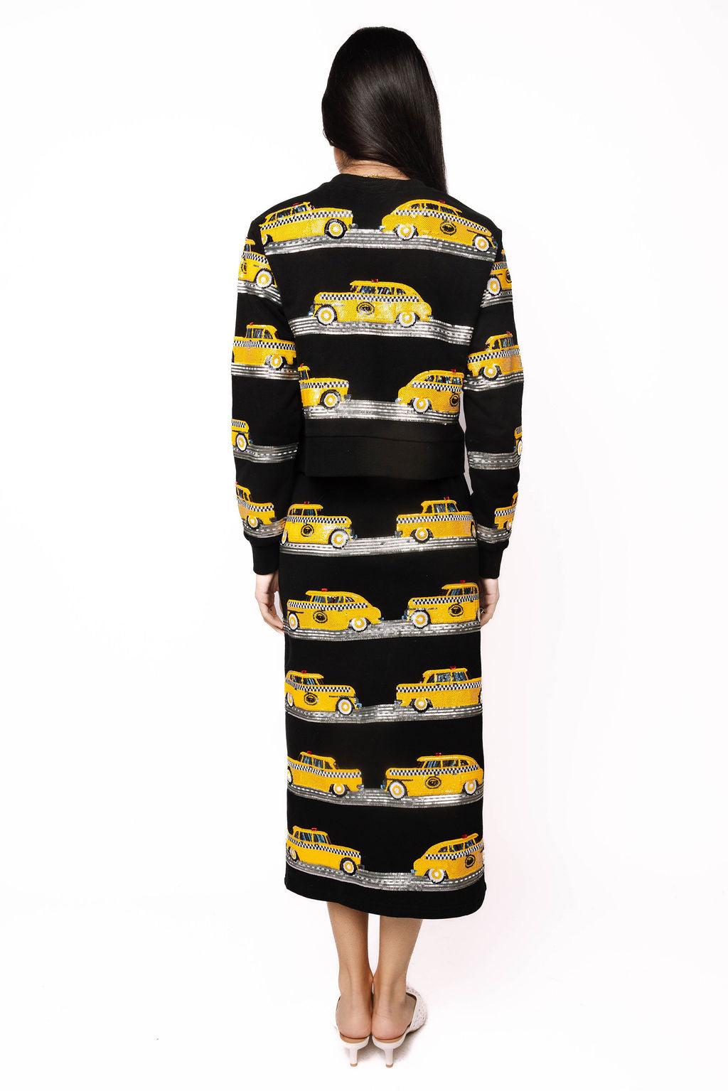 Sample Black Multi Taxi Cab Sweatshirt and Midi Skirt Set