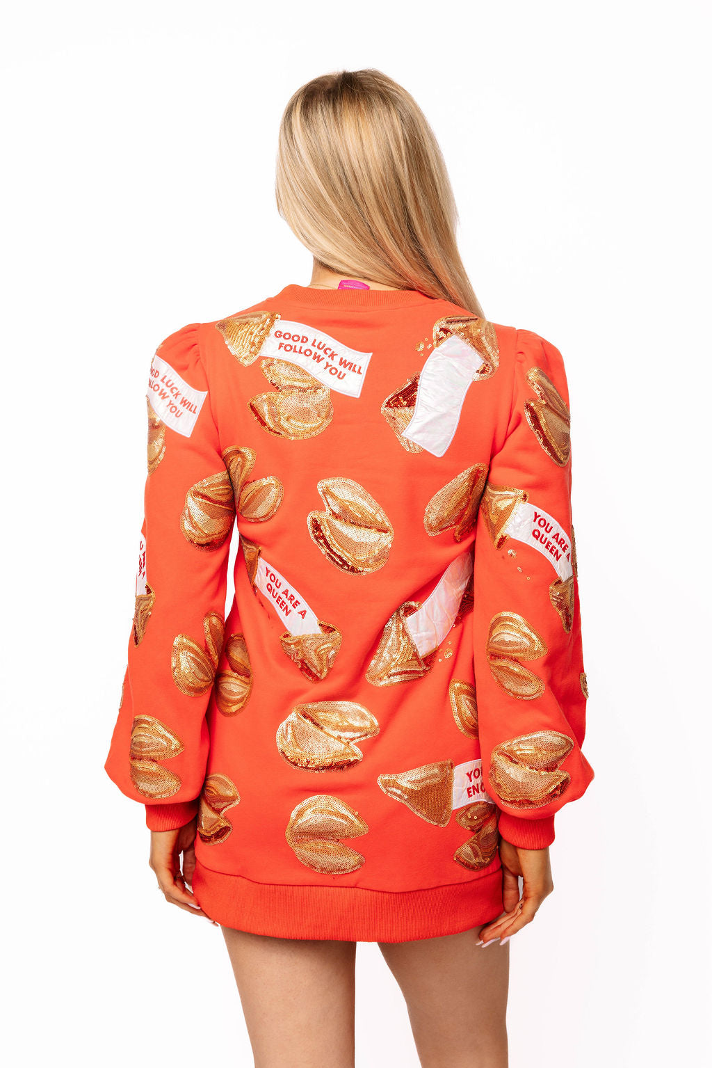 Sample Orange Fortune Cookie Queen Long Sleeve Dress