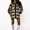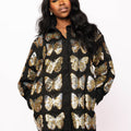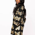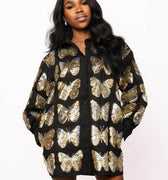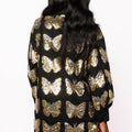 Black & Gold Sequin Butterfly Cotton Button Up Dress