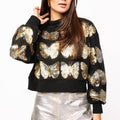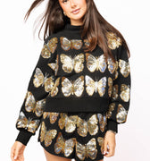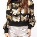 Black & Gold Sequin Butterfly Mockneck Sweatshirt