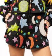 Step into the cosmos with our Black Multi Galaxy Short! This celestial-inspired piece features a mesmerizing blend of deep blacks and vibrant multi-colored galaxy patterns that'll have you shining brighter than a supernova. Perfect for anyone who wants to wear their love of the universe on their sleeve—or rather, their legs. Comfortable, eye-catching, and totally out of this world, these shorts are your ticket to stellar style that's truly astronomical.