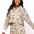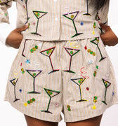 Get ready to turn heads in these vibrant striped shorts featuring a cheeky rainbow martini design! The elastic waist keeps you comfortable while you dance the night away, and the playful print brings instant party energy to any outfit. Pair with the matching top to create a show-stopping coordinated look that screams fun and flair. Perfect for girls' nights, themed parties, or anyone ready to sparkle and celebrate in style.