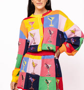 Raise a glass to fun with this multi-colored checkered sweater featuring cheeky martini details! The playful button-up design brings instant party vibes to any outfit. Mix and match with our coordinating skirt to create the ultimate coordinated look that'll have everyone asking where you got your style. Perfect for girls' nights, cocktail parties, or whenever you want to add a splash of sparkle and sass to your wardrobe.