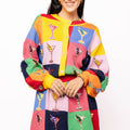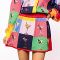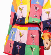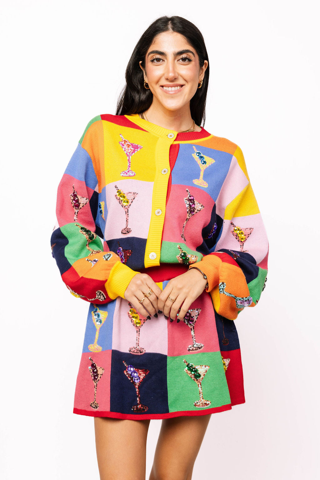 Raise a glass to fun with this multi-colored checkered skirt, complete with a cheeky martini design that screams cocktail hour vibes. The playful pattern mixes bold hues for maximum impact on the dance floor or at your next celebration. Pair it with the matching cardigan to complete your party-ready ensemble and turn heads wherever the night takes you. Perfect for anyone who loves a little sparkle and a lot of sass.