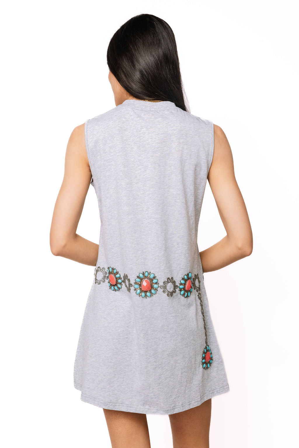 Sample Grey Turquoise Necklace Tank Dress
