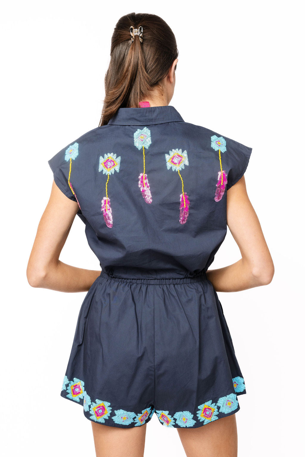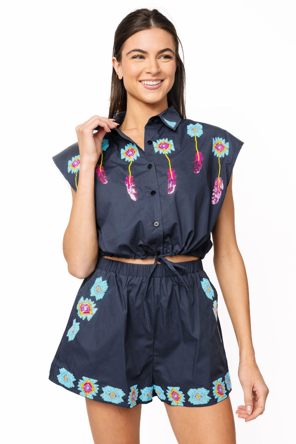 Sample Navy Aztec Feather Cotton Top & Short Set
