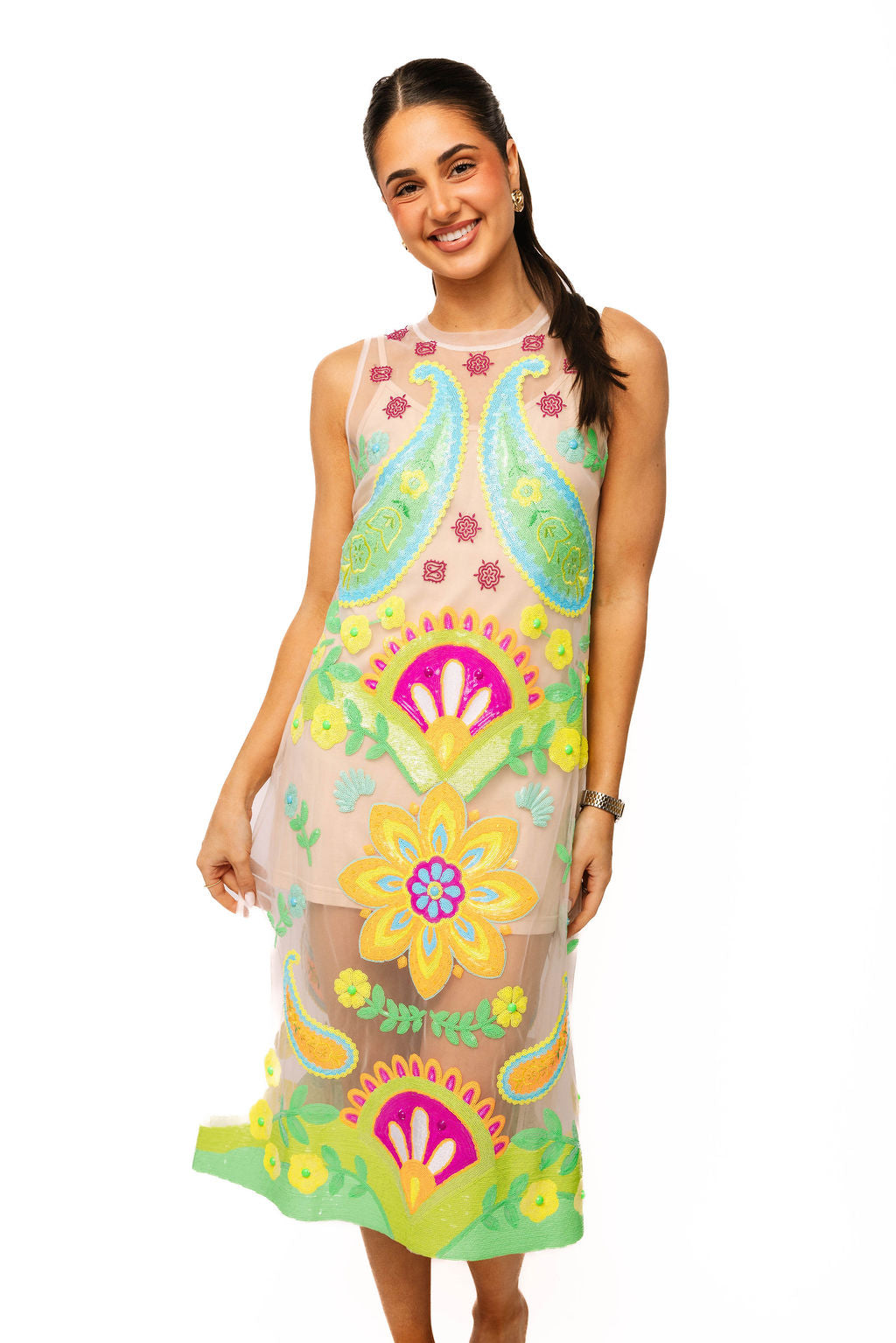 Sample White Sheer Neon Paisley Coverup