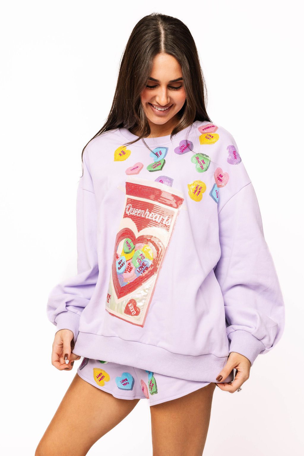 Lavender 'Queen Hearts' Candy Box Sweatshirt