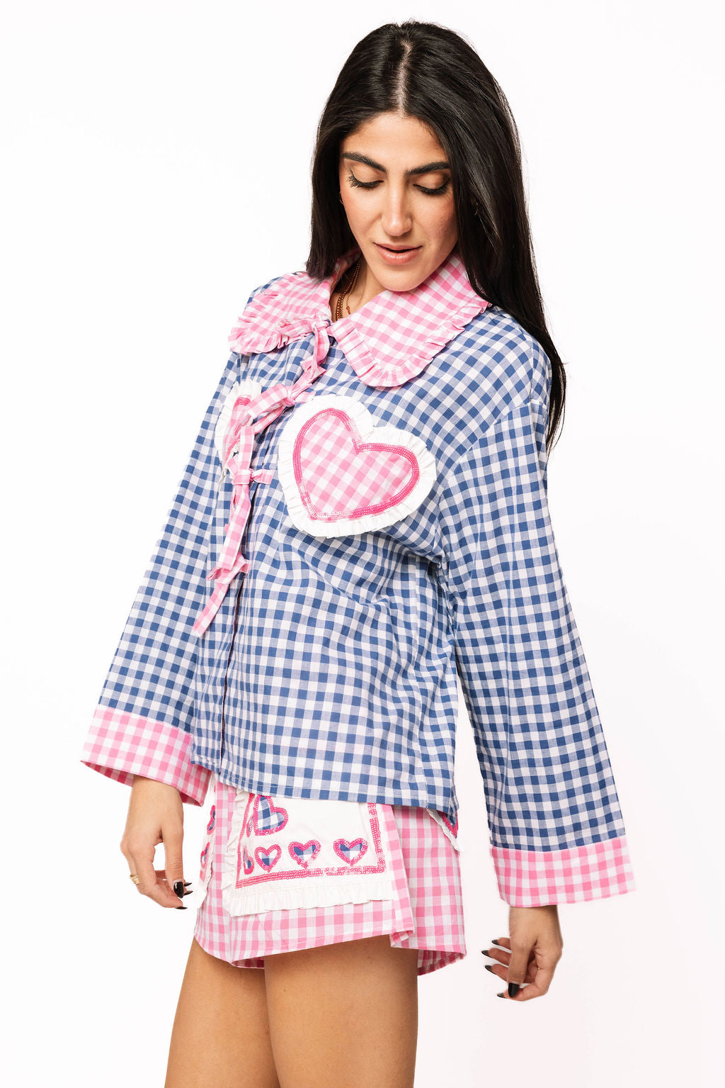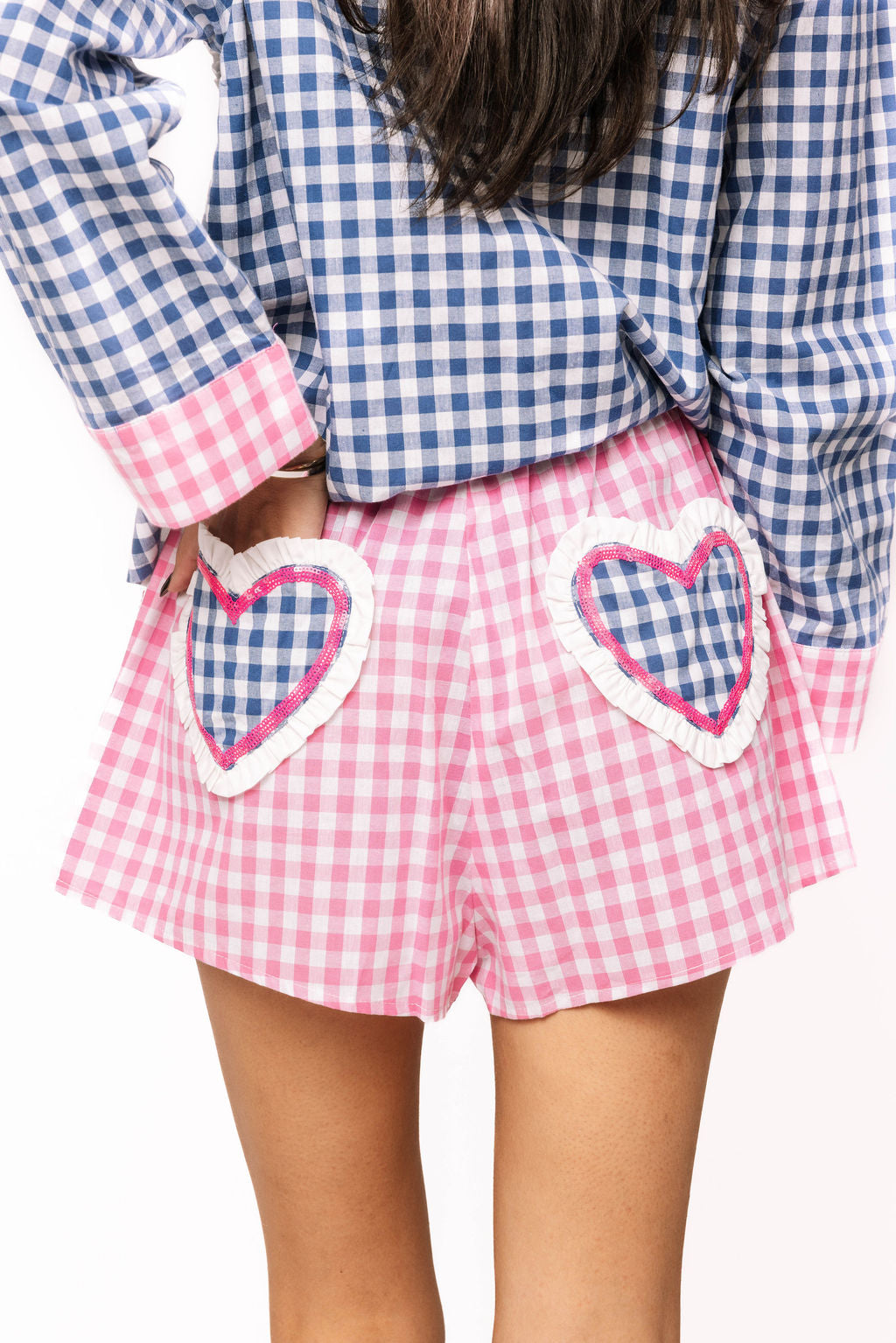 Adorable pink gingham shorts featuring charming white pockets decorated with hearts—the perfect playful piece for any sparkle-loving wardrobe! The ruffled design adds extra flair and movement. Mix and match with our coordinating gingham top to create an Instagram-worthy outfit that's equal parts sweet and sassy. Whether you're heading to brunch or a summer festival, these shorts bring the fun and the fashion. Get the complete look and let your style shine!