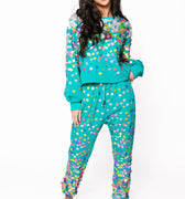 Sample Teal Rainbow Paillette Sweatshirt/Jogger Set