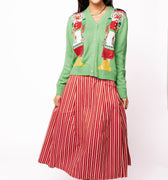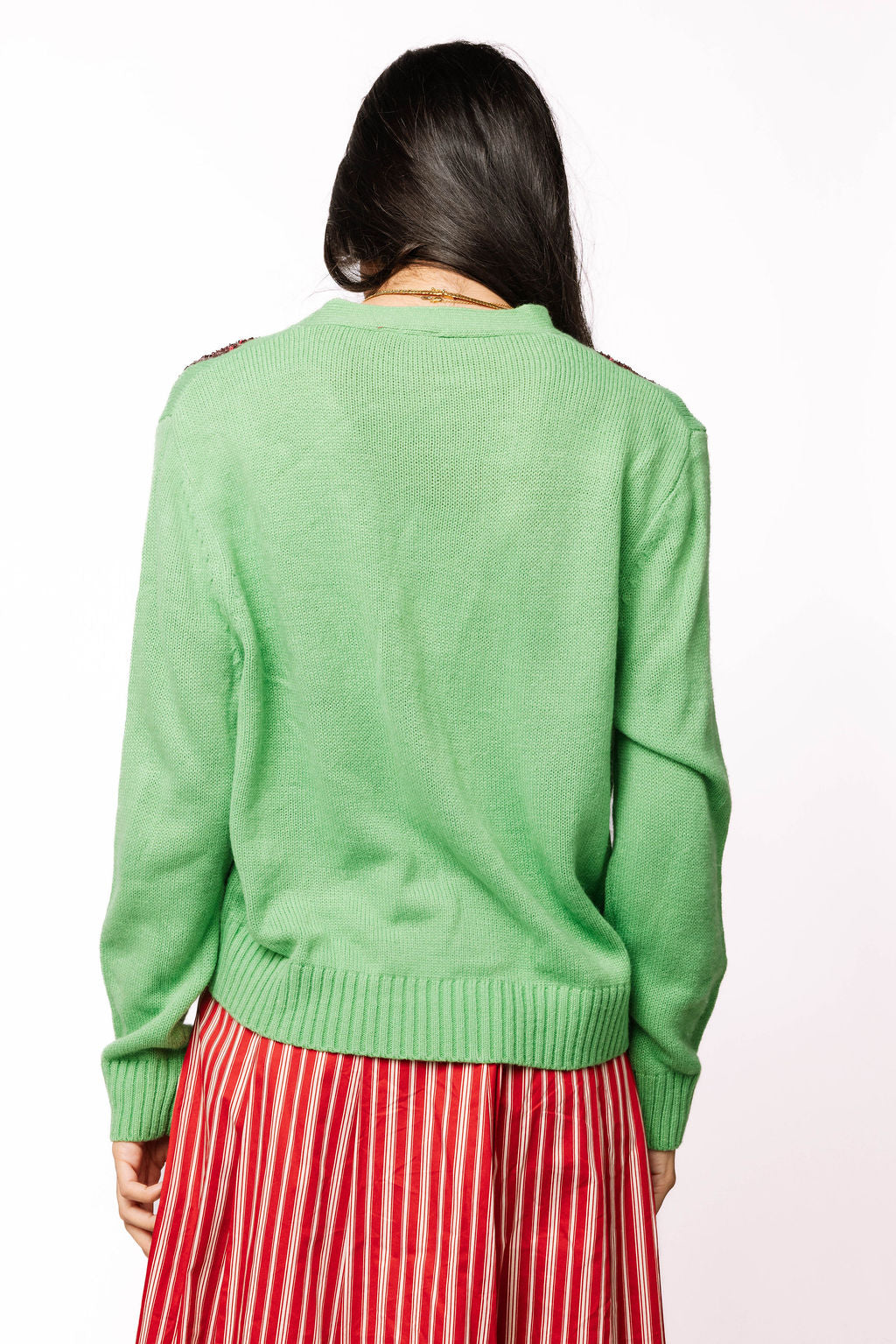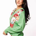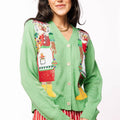 Celebrate the holiday spirit in style with this playful green button-up cardigan featuring delightful Mrs. Claus details. Perfect for cozy winter days or festive gatherings, it adds a charming touch to your seasonal wardrobe. Warm, comfortable, and full of holiday cheer, this cardigan makes spreading joy as easy as slipping it on.