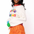 Celebrate the joy of sparkle season with this cozy white colorblock sweater! Its crisp white design pops with stylish contrast, making it the perfect playful layer for chilly days. Soft, comfortable, and effortlessly festive, this sweater keeps you warm while adding a dash of sparkle to your everyday look.