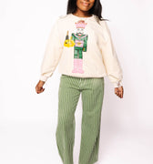This festive Beige Nutcracker Server Sweatshirt features an oversized design with a sequin nutcracker motif of our classic Queen of Champagne Sweatshirt. Look stylish this holiday season and enjoy the comfort and luxury of this unique piece.