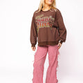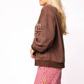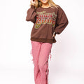 Cozy up this season with our brown oversized sweatshirt, sparkling with "Thanksgiving" spelled out in dazzling rhinestones. Perfect for staying comfy while adding a fun, festive sparkle to your fall days. Whether you’re lounging or celebrating, this playful piece brings warmth and style together effortlessly.