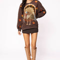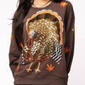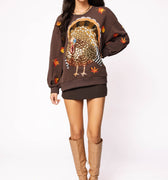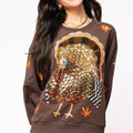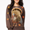 Cozy up in our Brown Turkey & Leaves Sweatshirt, your perfect fall companion! Featuring charming leaf patterns on the front and back, plus a detailed turkey design up front, it’s a fun way to celebrate the season. Whether you're relaxing at home or joining a Thanksgiving feast, this sweatshirt adds a playful touch to your autumn wardrobe.