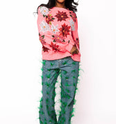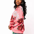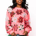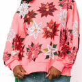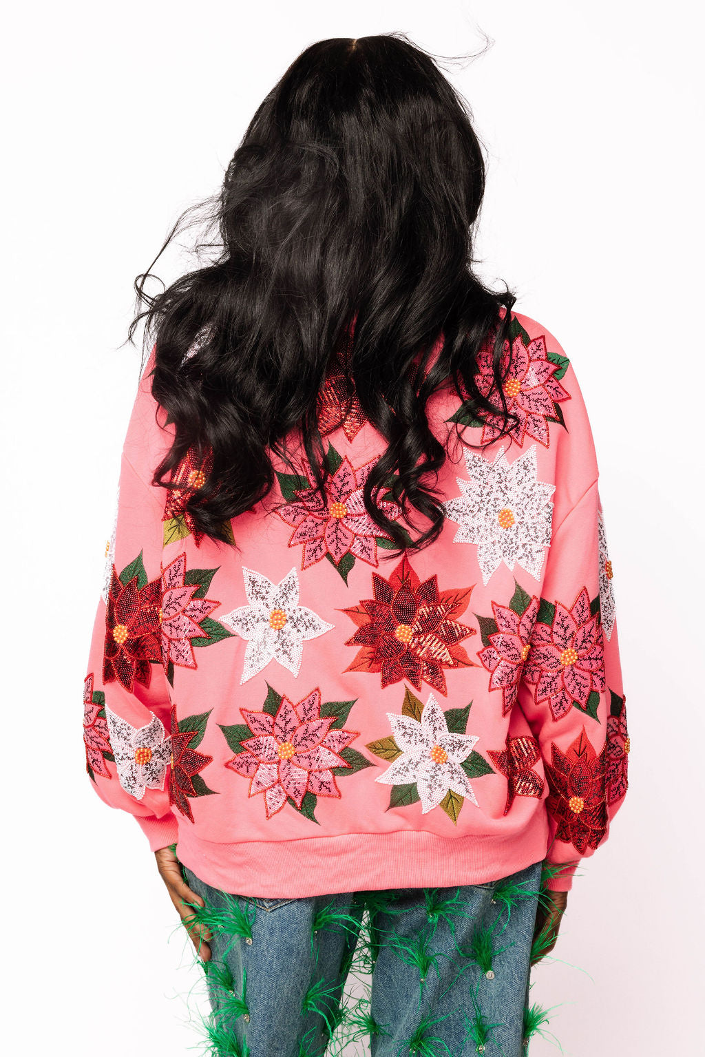 Brighten your cozy days with this neon pink sweatshirt featuring a sparkling sequin poinsettia design. Its playful pop of color and festive embellishment make it a fun and comfy choice for holiday gatherings or casual outings. Stay warm and shine bright wherever you go!