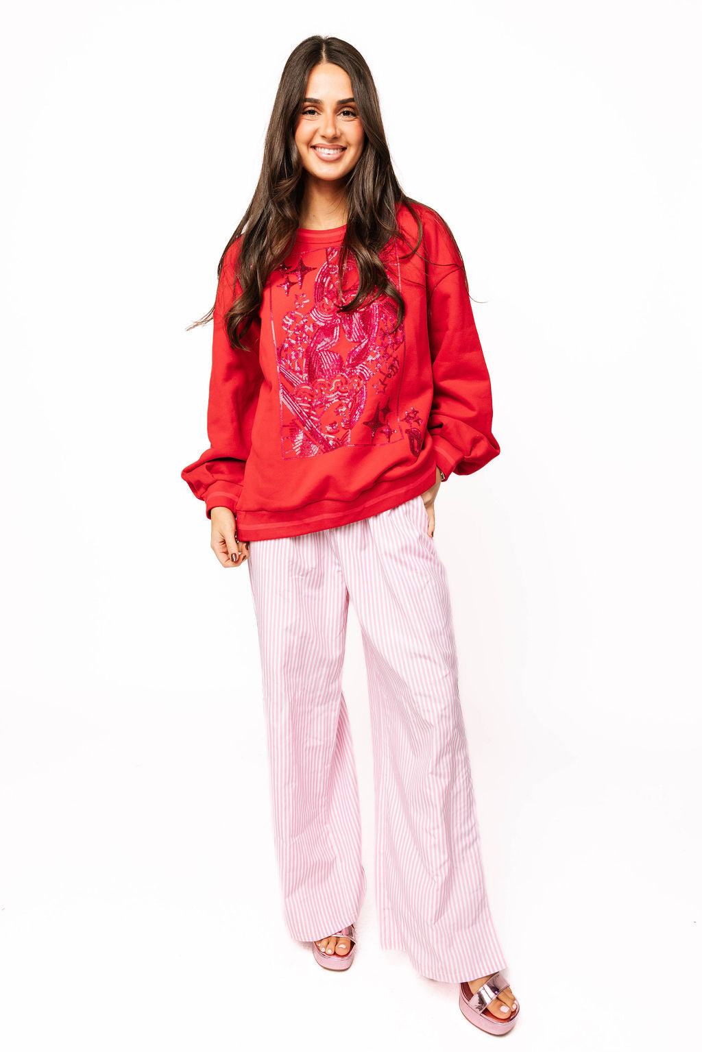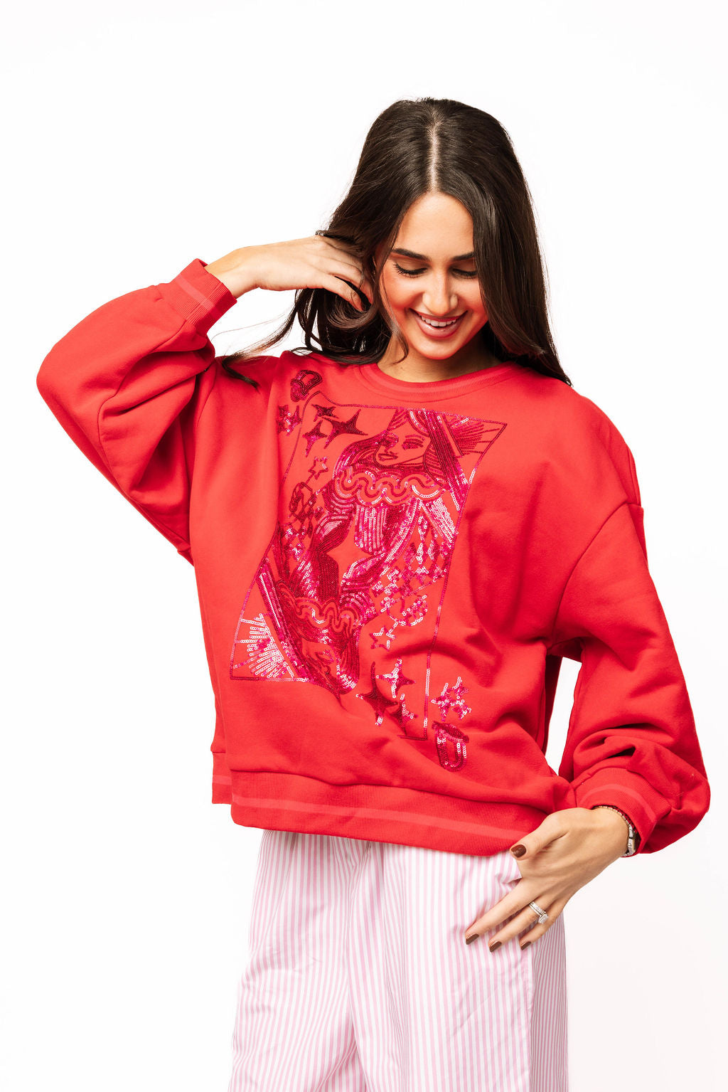 Wrap yourself in love with our Red & Pink Tonal QOS Logo Card Sweatshirt—a cozy essential that celebrates the Queen of Sparkles spirit. Featuring our iconic logo in gorgeous red and pink tones, this sweatshirt is perfect for February romance or year-round sparkle. Soft, comfortable, and undeniably cute, it's the ultimate way to show your QOS pride while staying snug and stylish. Slightly oversized.
