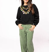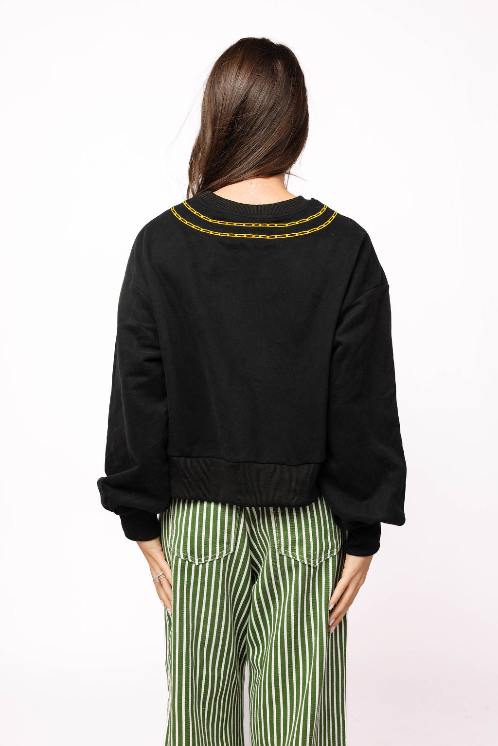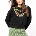 Celebrate the festive season with a twist of fun in this Black Christmas Necklace Sweatshirt. Cozy and stylish, it features a playful design that mimics a festive necklace, bringing holiday cheer without the fuss. Perfect for staying warm while spreading merry vibes at any holiday gathering or casual day out. Get ready to sparkle and stay comfy all season long!