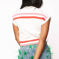 Embrace the holiday spirit in this cozy white sweater top featuring playful red and pink stripes and a charming vintage Santa design. The fuzzy texture adds warmth and fun, making it perfect for spreading festive cheer and holiday nostalgia wherever you go. Ideal for anyone who loves classic Christmas vibes with a cute, whimsical twist!