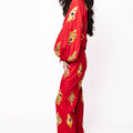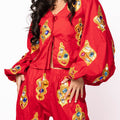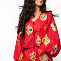 Red & Gold Jeweled Ornament Cotton Tie Up Top