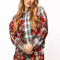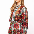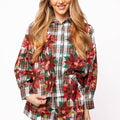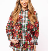 Red, Green & White Plaid Poinsettia Cotton Button Up Top